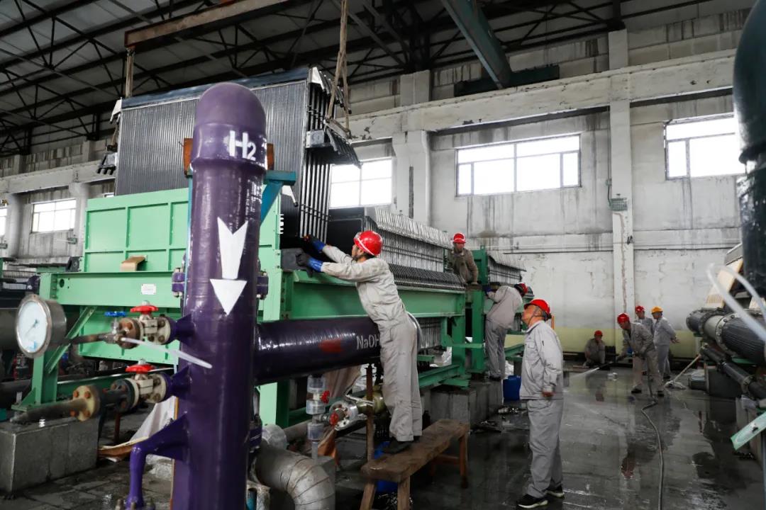 为实现����� �������Ƴ������������ �������Ƴ������������ �������Ƴ������������ �������Ƴ�������极网进降本增效,提高电解槽的电流效率����� �������Ƴ������������ �������Ƴ����������� �������Ƴ������������ �������Ƴ�������,保障生产稳定运行,公司购买目前国际最 新����� �������Ƴ������������ �������Ƴ������������ �������Ƴ������������ �������Ƴ�������技术nx--BiTAC ����� �������Ƴ����������� �������Ƴ������������ �������Ƴ������������ �������Ƴ�������; PLUS电解槽,对旧设备����� �������Ƴ������������ �������Ƴ������������ �������Ƴ������������ �������Ƴ�������进行更新换代。9月25日,电化����� �������Ƴ������������ �������Ƴ������������ �������Ƴ������������ �������Ƴ�������厂5万吨/年烧碱1#电解槽阴阳行更换,10月15日,电化厂2����� �������Ƴ������������ �������Ƴ������������ �������Ƴ������������ �������Ƴ�������0万吨/年烧碱4#电解槽进行技改。