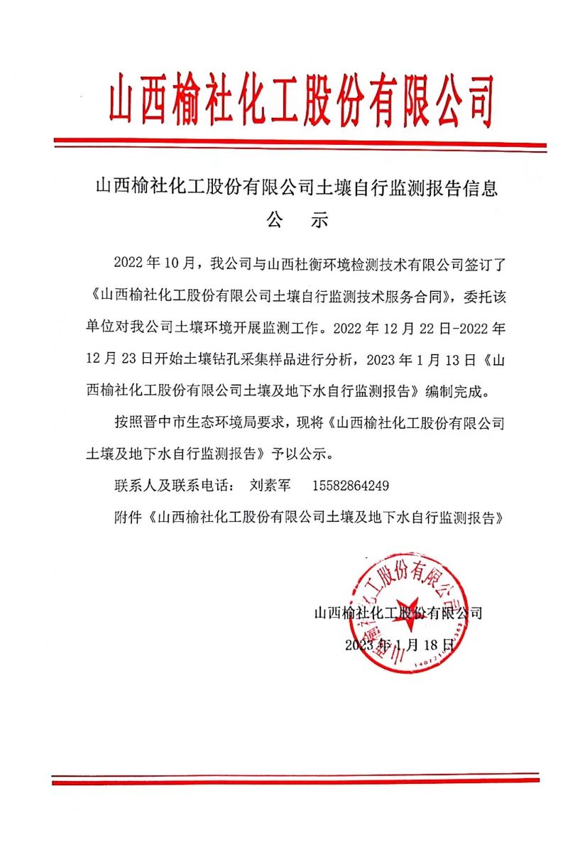 榆社化工土壤和地下水自行监����� �������Ƴ������������ �������Ƴ������������ �������Ƴ������������ �������Ƴ�������测2022年报告